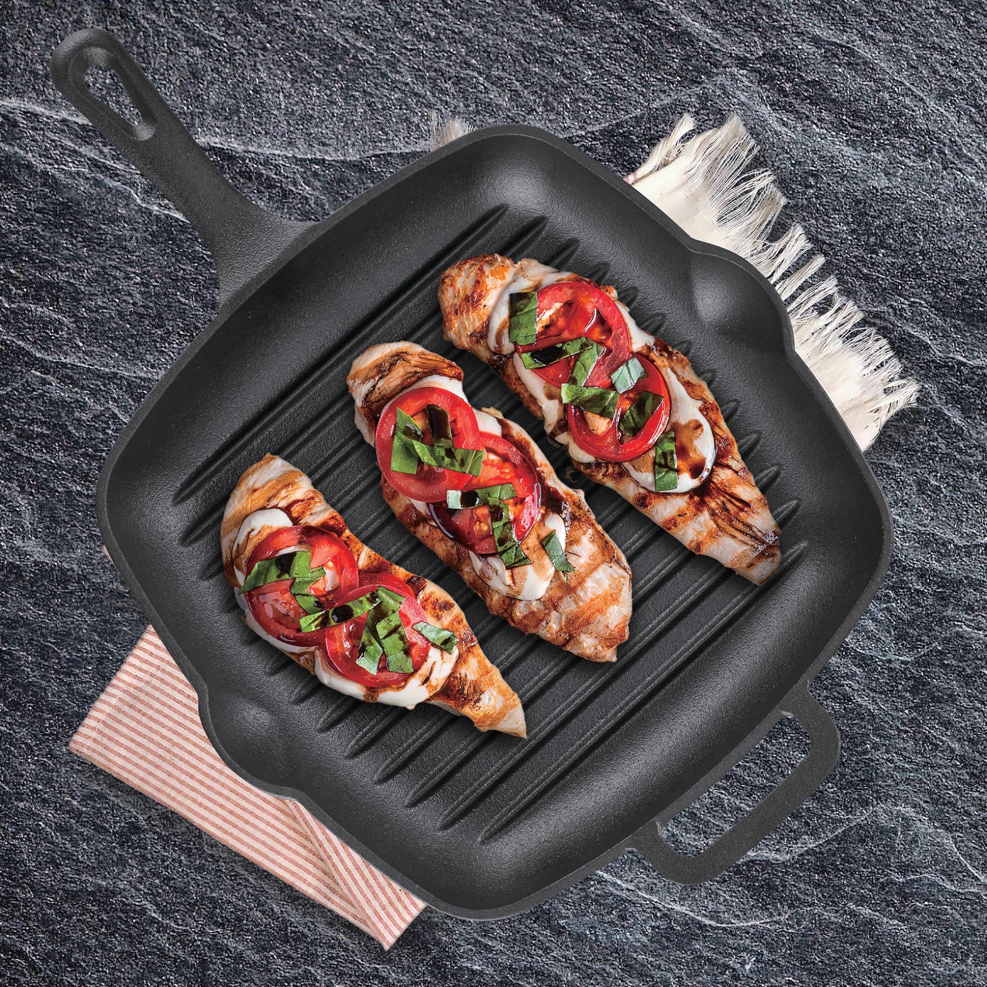 Fire up flavor with the EUROSTAR 10.5" Cast Iron Grill Pan - your all-in-one solution for perfect grill marks and unbeatable heat retention. Whether you're searing steaks on the stovetop, grilling veggies over a campfire, or oven-roasting your favorite meats, this heavy-duty pan delivers delicious results every time. With a smart, ergonomic design including a large eyehole for easy storage, a comfortable grip handle, and an assist handle for stability, it's built for performance and convenience. Complete with two silicone handle covers to keep your hands safe and your grip secure.