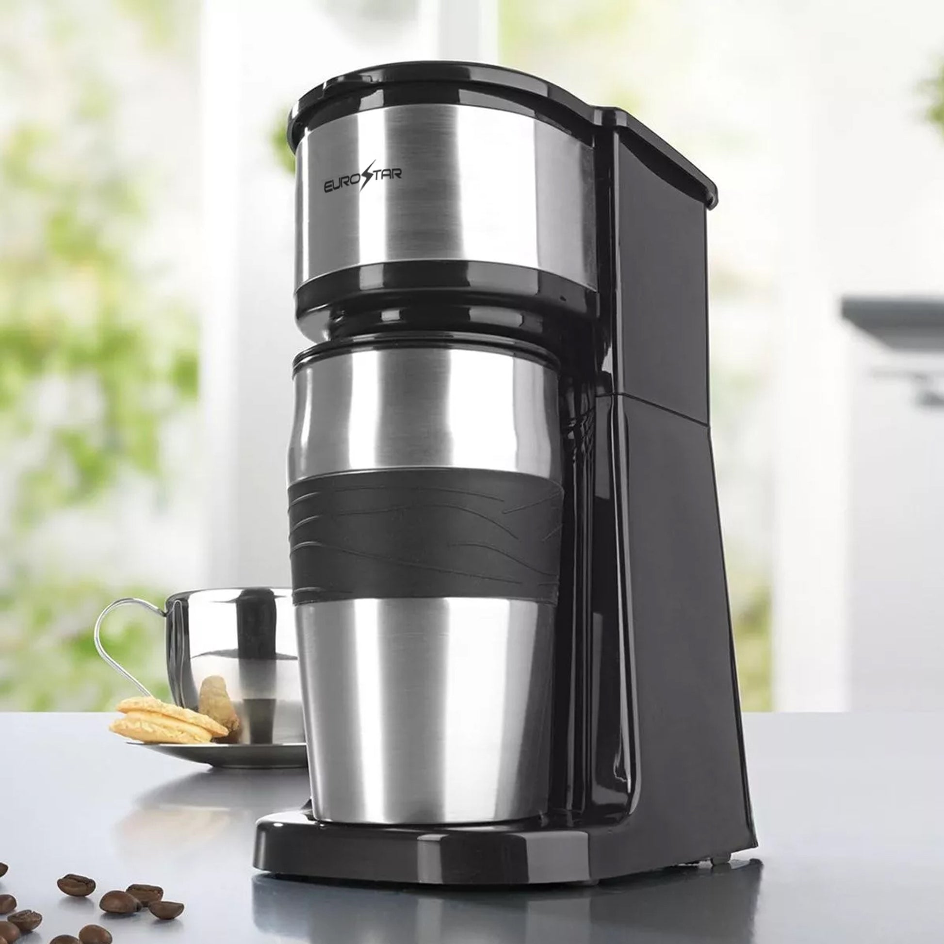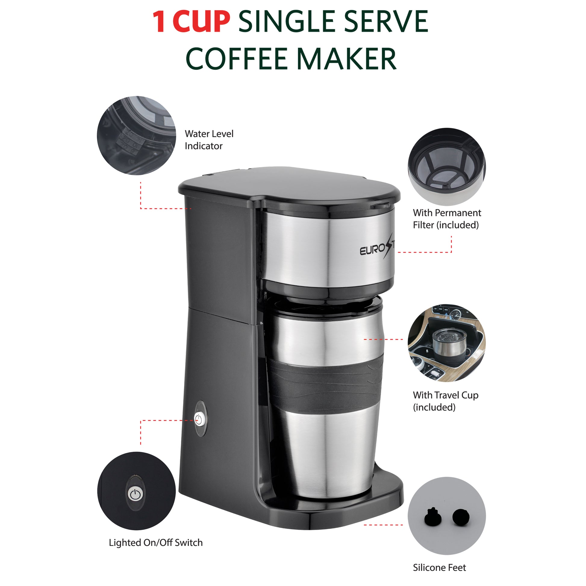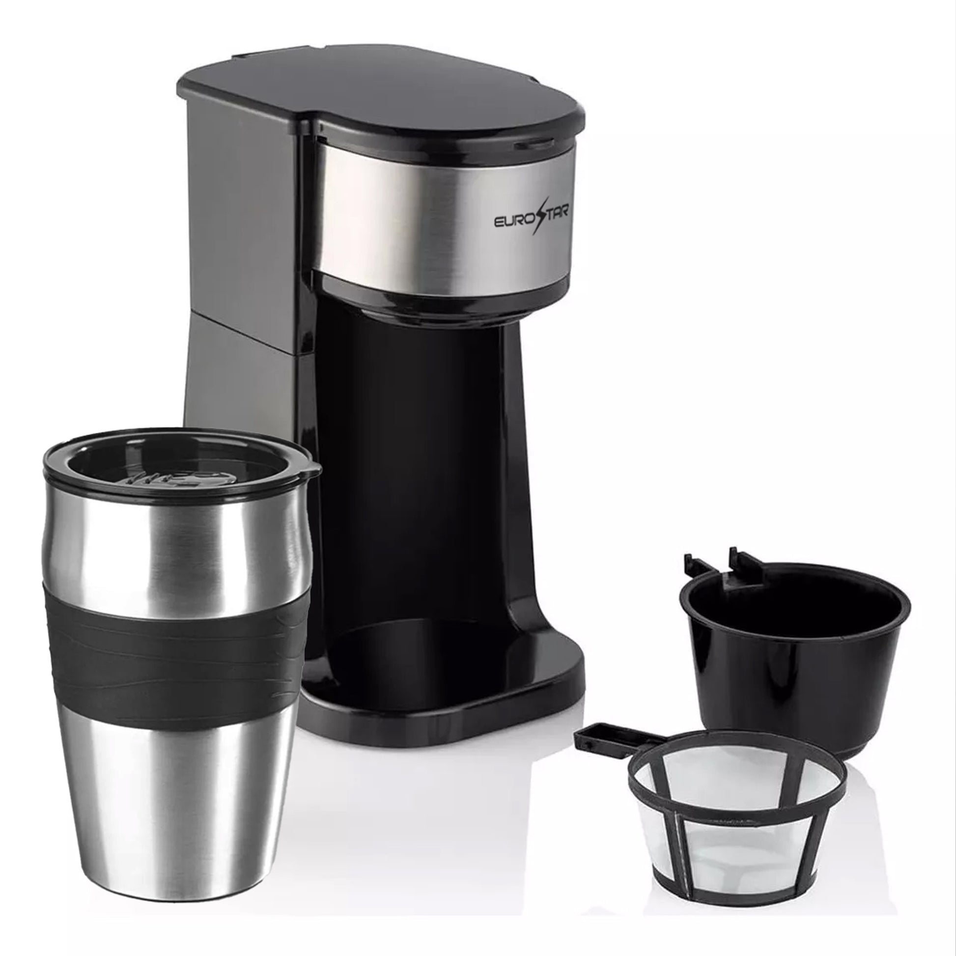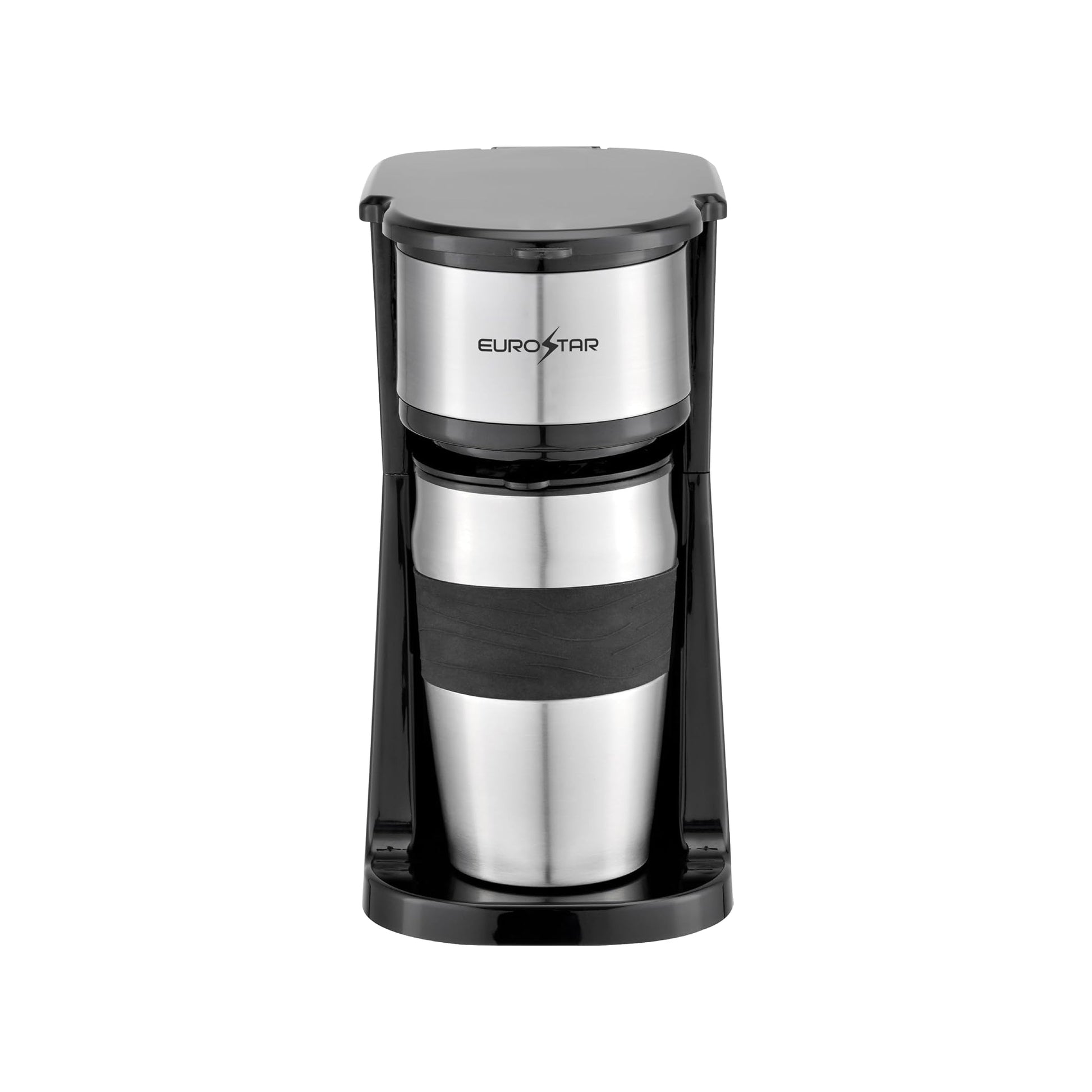 Enjoy fresh, hot coffee anytime with the EUROSTAR Single Serve Coffee Maker - Perfect coffee, one cup at a time! Designed for convenience, it features a permanent filter, water level indicator, and auto shut-off for effortless use. Whether you're at home or on the go-no waste, no hassle. Perfect for busy mornings or small spaces.