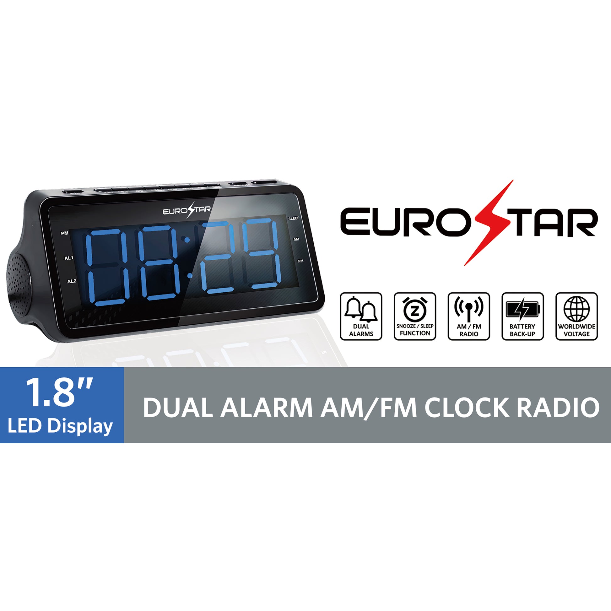 A smarter start to your day - the EUROSTAR Dual Alarm AM/FM Clock Radio. Stay on schedule in style featuring worldwide voltage, ideal for travel or international use.