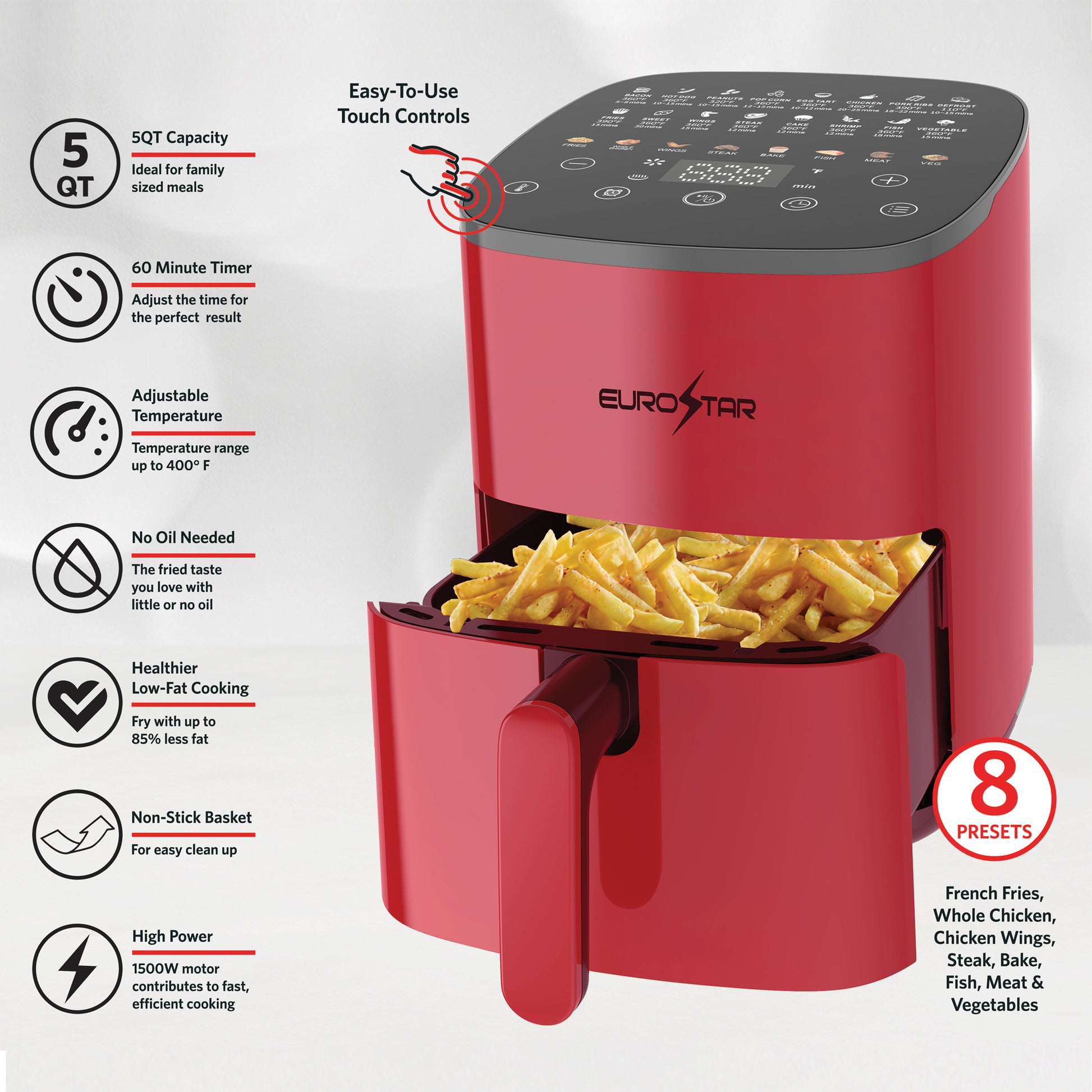 Healthy, Crispy, Delicious-Every Day! Transform the way you cook with the Eurostar 5-Quart Air Fryer-your ticket to guilt-free, flavorful meals.