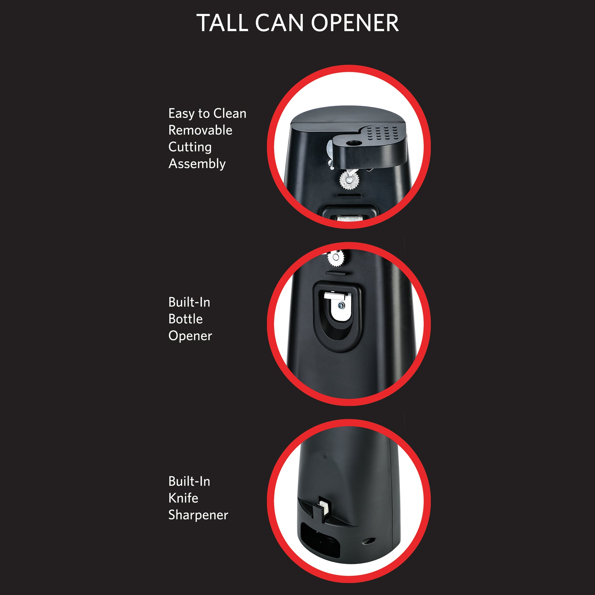 Curved, Tall Base - The curved body and stabilizing base have been optimized to easily open most can sizes.
