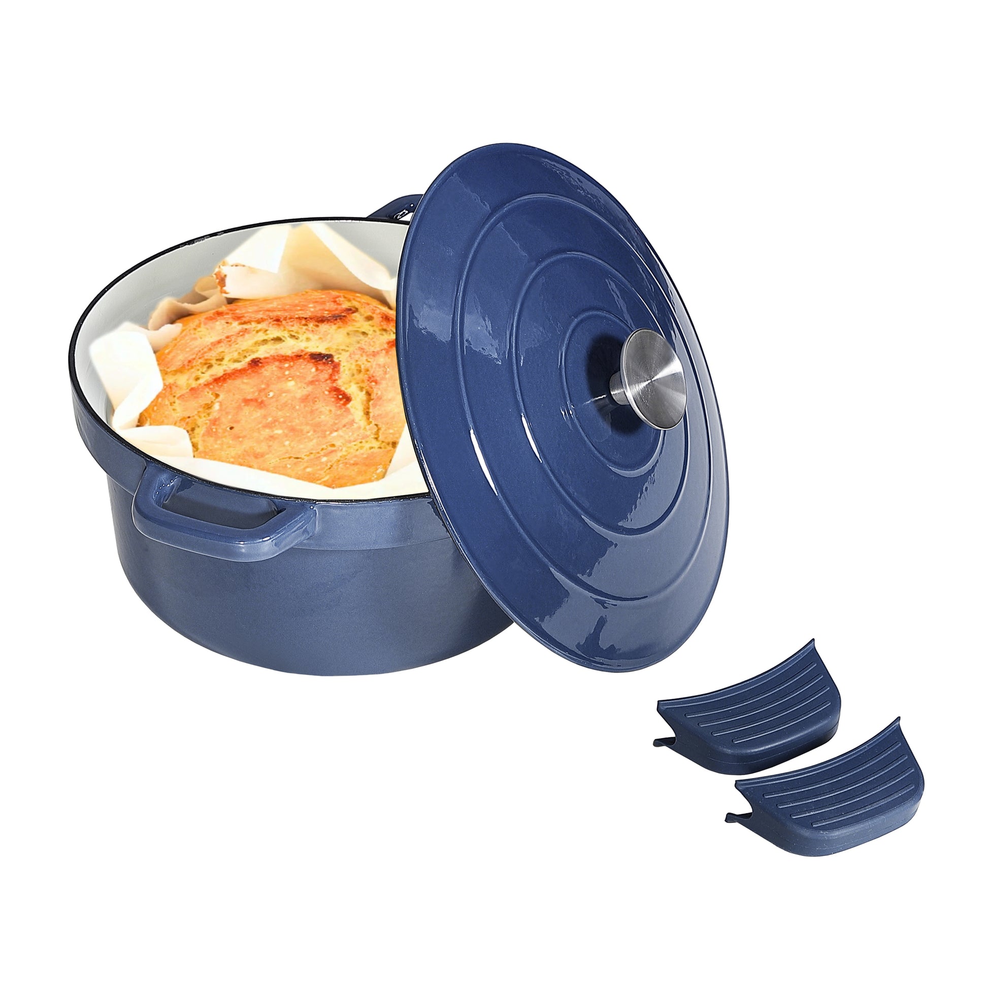EC6DTL Enameled Cast Iron Dutch Oven Pot with Lids, Blue
