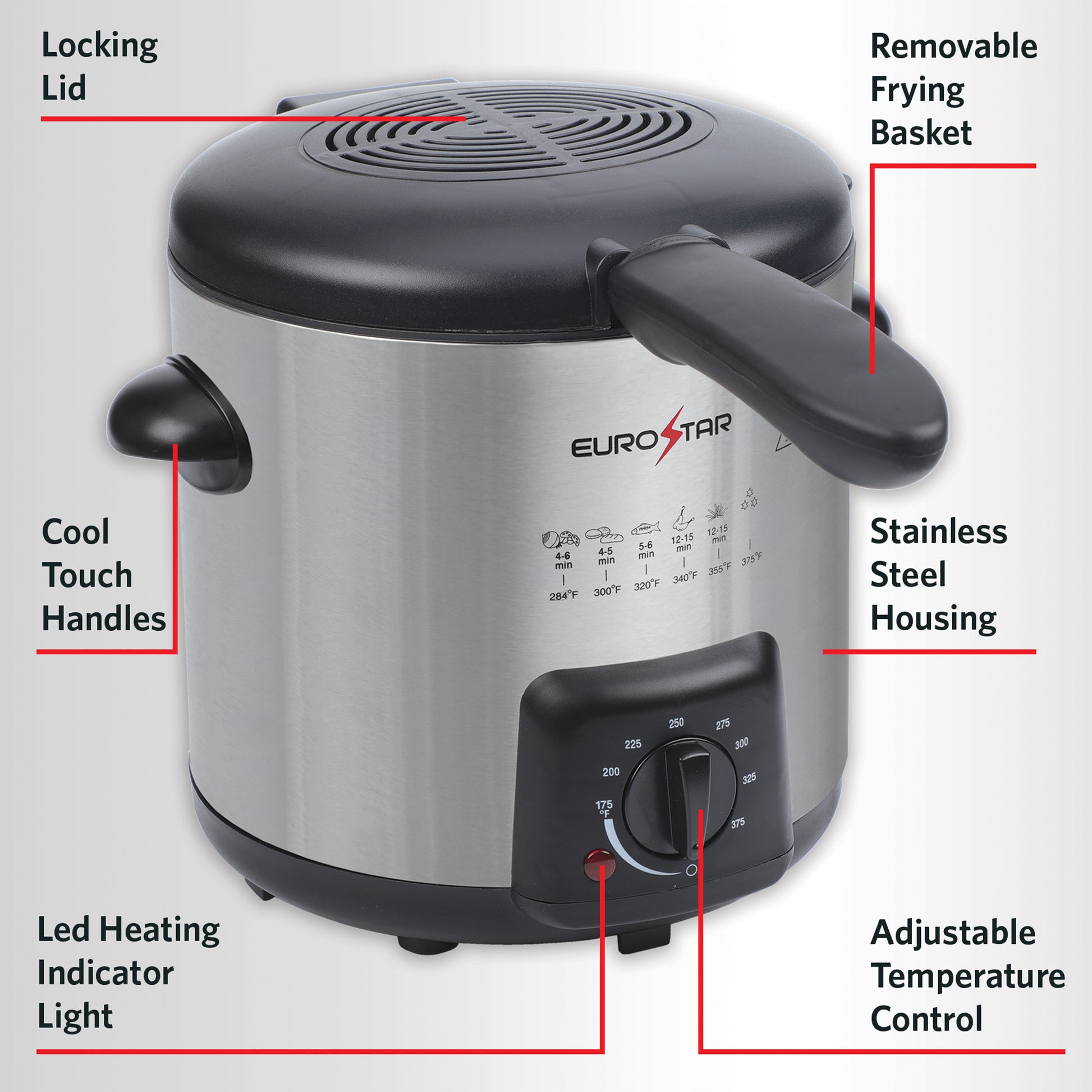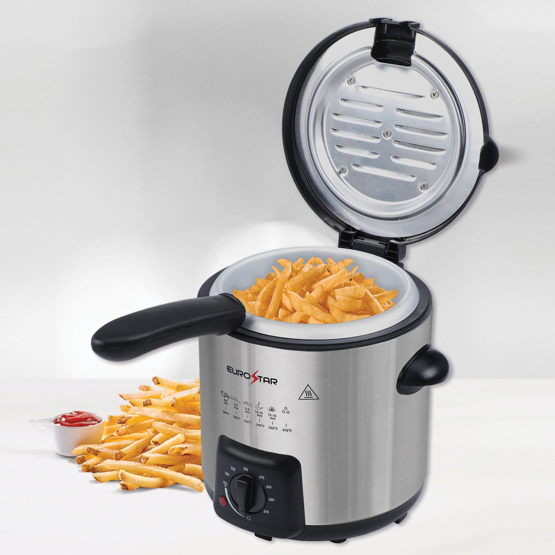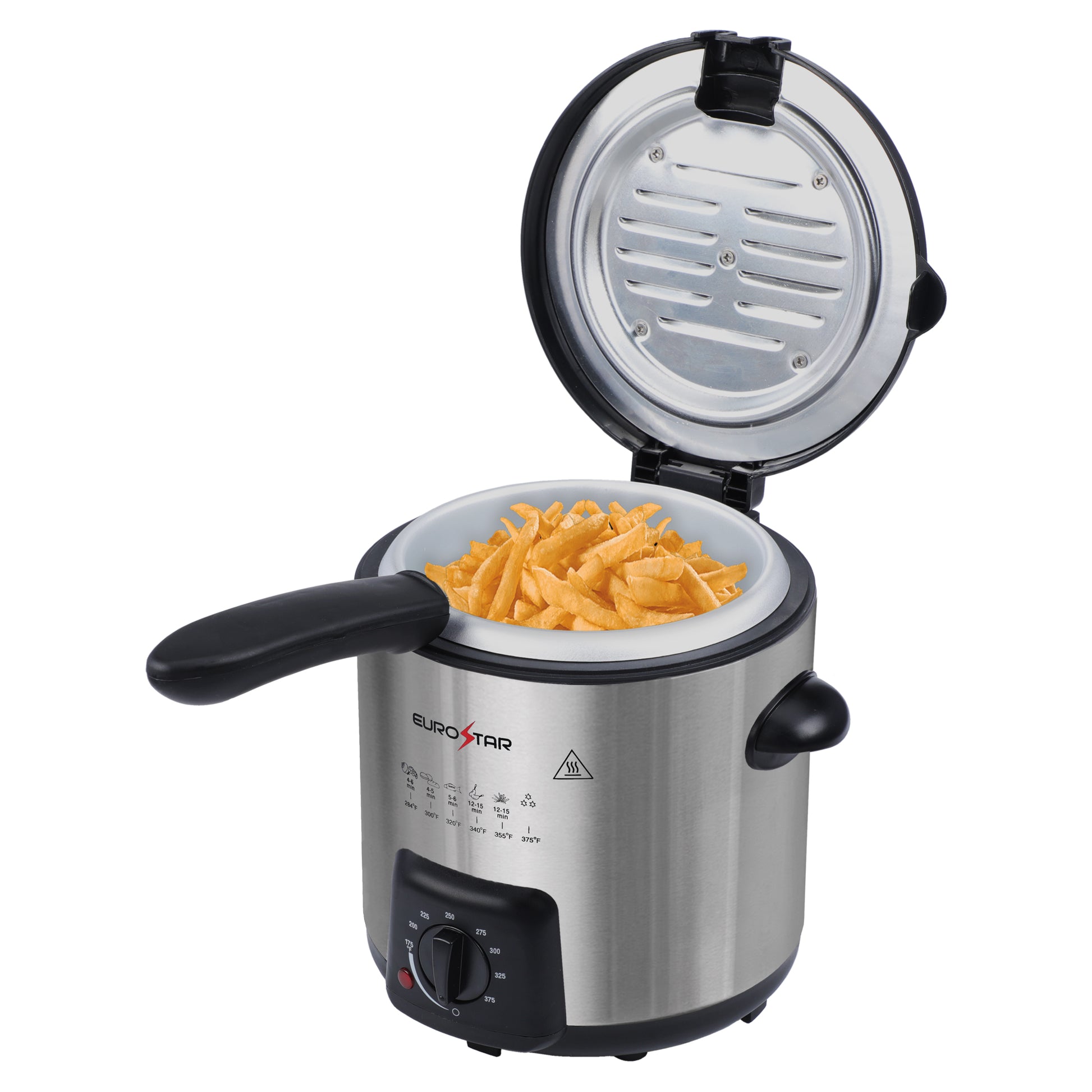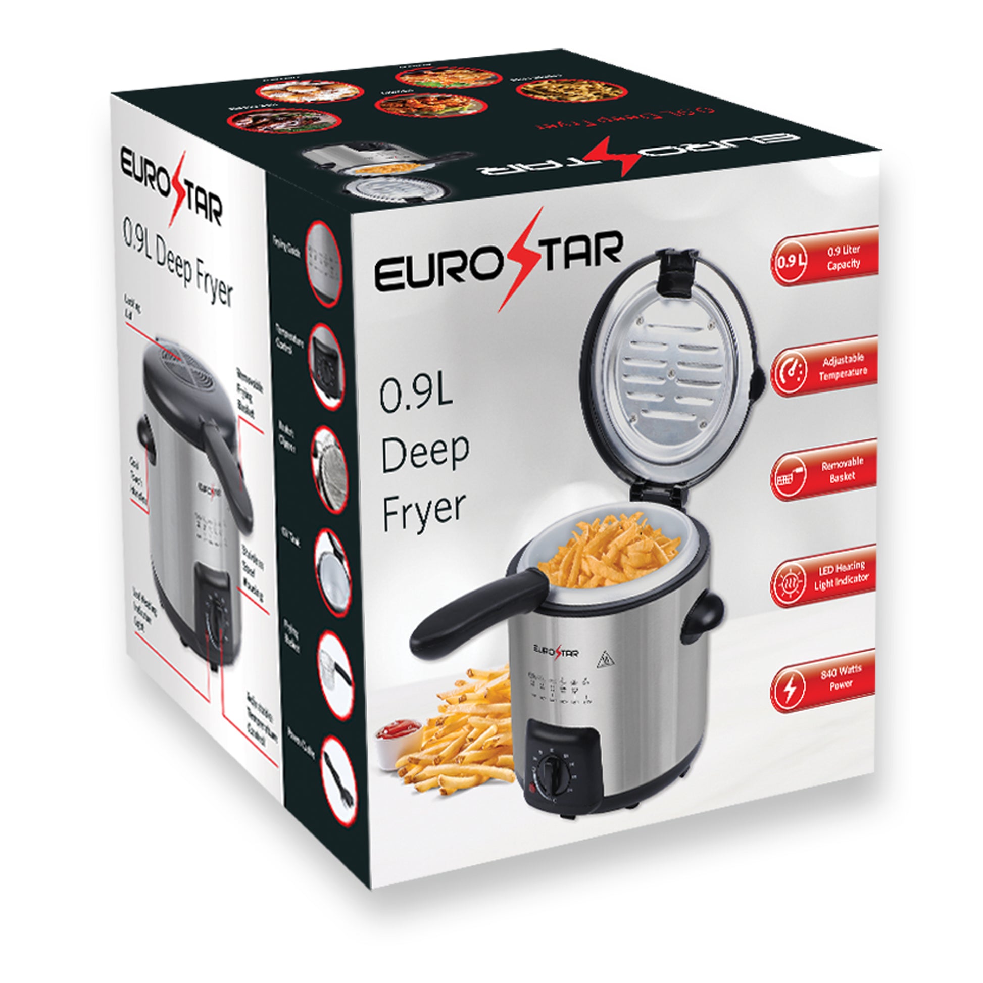 Upgrade your kitchen with our compact 0.9 liter deep fryer-the perfect solution for delicious, homemade snacks. Features adjustable temperature settings with a user-friendly guide imprinted on it for easy frying without the need for a recipe. Quick heat-up and easy to clean with its non-stick interior and detachable components make this unit ideal for any cook.