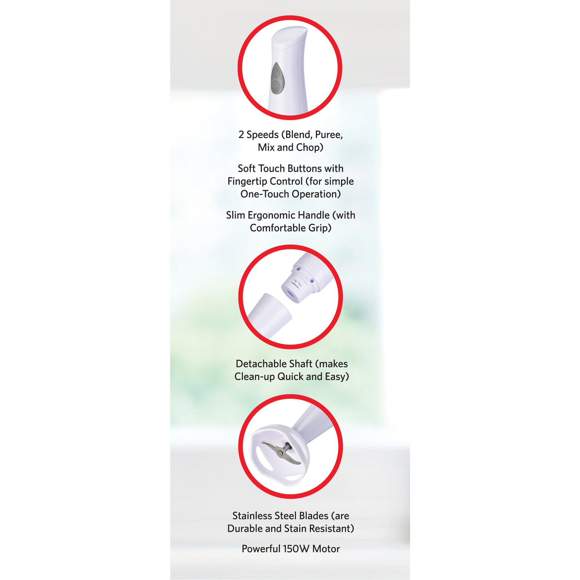 EH402W 2-Speed Immersion Hand Blender with Detachable Shaft, White