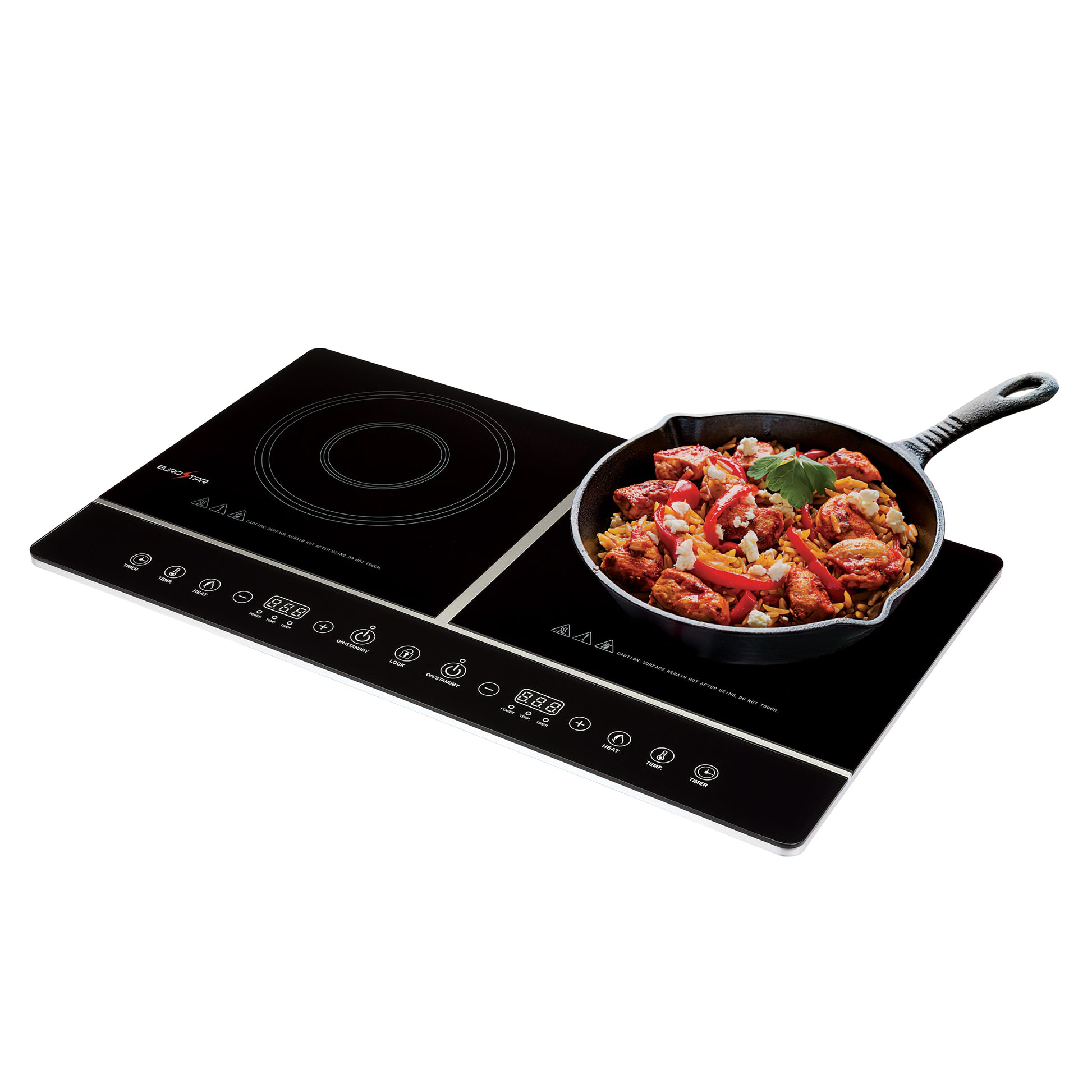 Cook smarter, faster, and safer with the EUROSTAR Double Induction Cooktop - your compact powerhouse for modern kitchens. With 1800 watts of energy-efficient power, dual heating zones, and easy-to-use touch controls, this cooktop gives you precision and performance in a sleek, easy-to-clean design. Choose from 6 power levels and 11 temperature settings to master every meal-from boiling and frying to simmering and steaming. Plus, it's compatible with all induction-ready cookware, making it the perfect fit for your culinary routine.