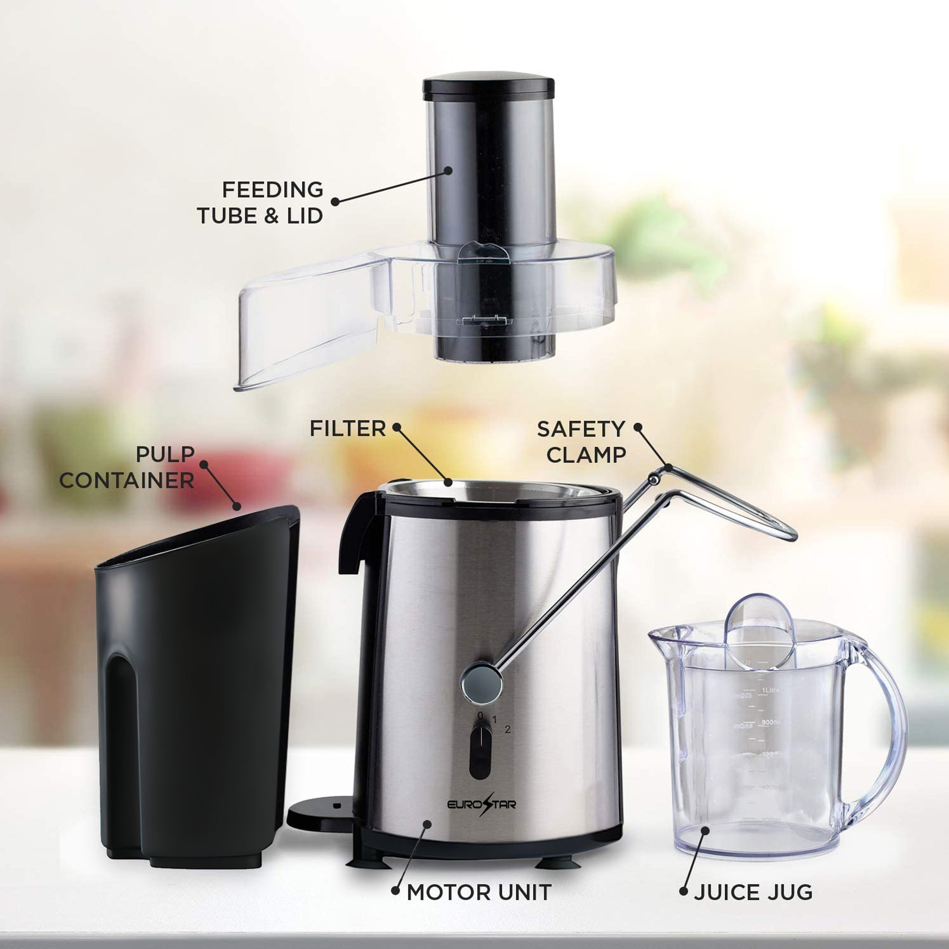 Stainless Steel Cutting Disc: Durable stainless steel blade and micro-mesh filter ensure smooth and nutrient-rich juice every time.