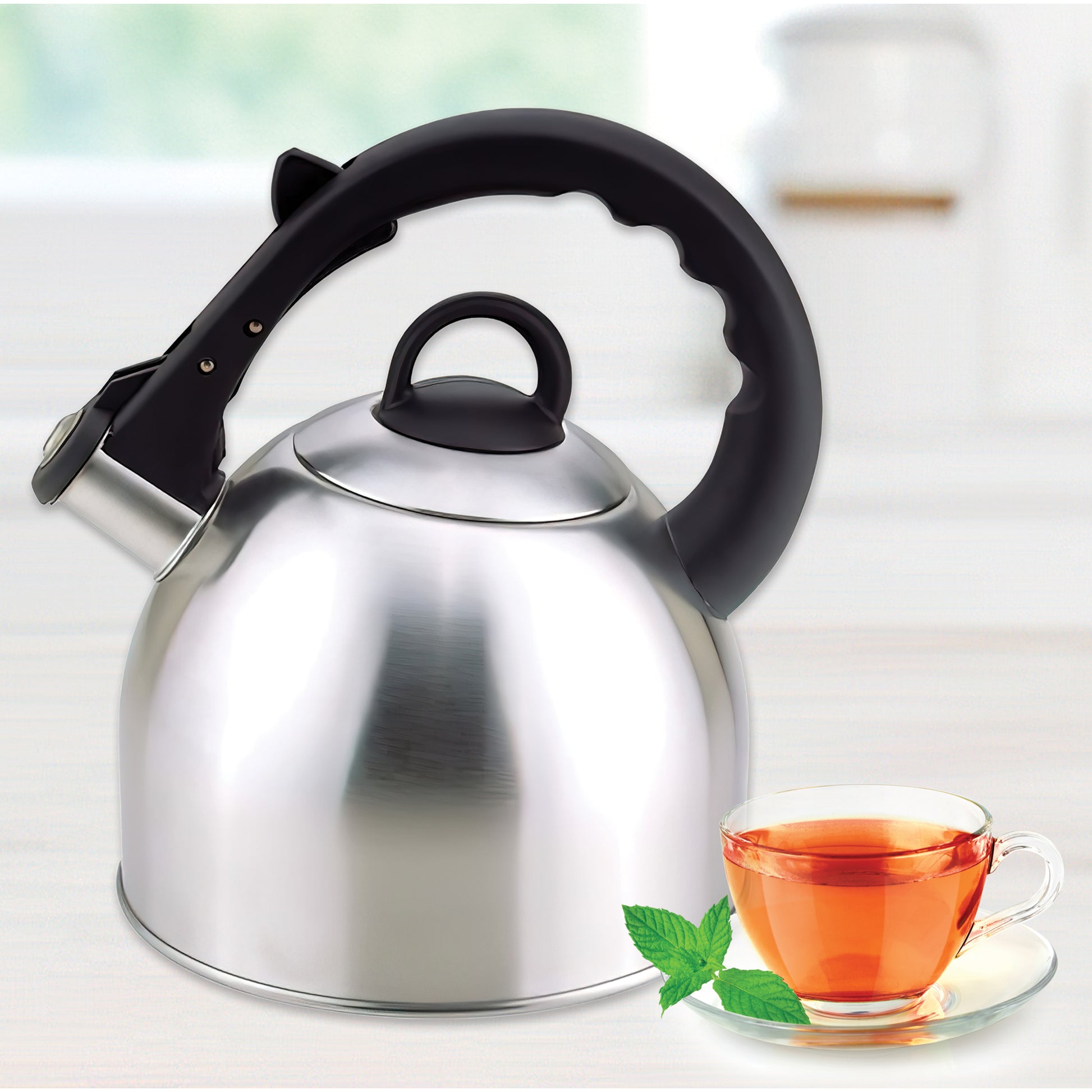 Enjoy a perfect cup of tea with the EUROSTAR 2.5L Tea Kettle, designed for convenience, safety and style. Crafted from premium stainless steel, this kettle ensures fast and even heating on all cooktops, including gas, electric, induction, halogen and ceramic. The heat-resistant handle stays cool while the one- hand switch and lid lift make pouring effortless and spill-free. A loud whistling alert signals when your water is ready, so you never forget. The wide lid opening allows for easy filling and thorough cleaning, ensuring long-lasting performance.