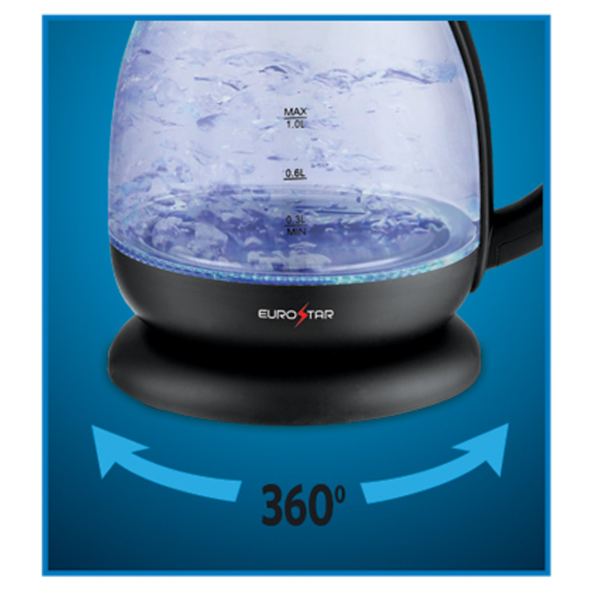 EKG100BK 1.0L Glass Electric Kettle, Black