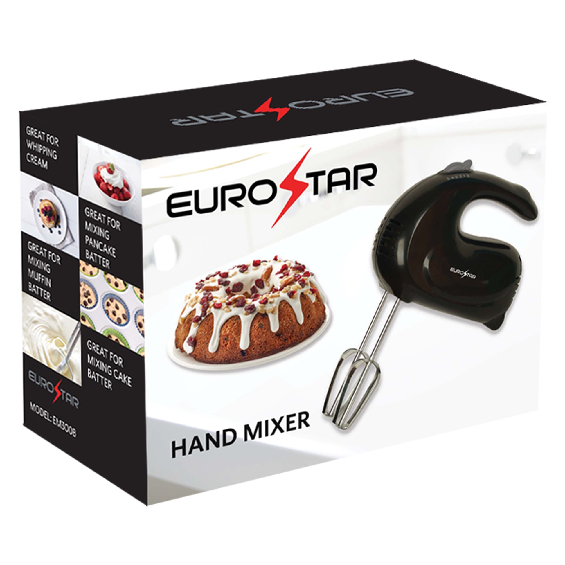 Effortless Mixing at your fingertips! Whip up your favorite recipes with ease using the EUROSTAR 150-Watt 5-Speed Hand Mixer. Designed for versatility, it features a one touch slide control to seamlessly adjust speeds, ensuring perfect consistency for every mix. The stainless steel beaters provide durability and efficiency, while the ergonomic handle ensures a comfortable grip for effortless use. Whether you're mixing batter, whipping cream, or beating eggs, this hand mixer makes kitchen prep a breeze.