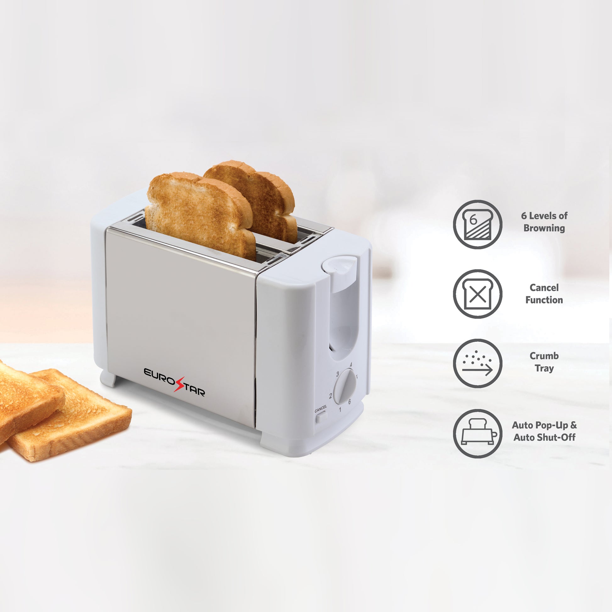 Upgrade your mornings with our premium EUROSTAR 2-Slice Toaster, designed for convenience and precision. Whether you like your toast light and crispy or deep golden brown, this toaster has you covered.