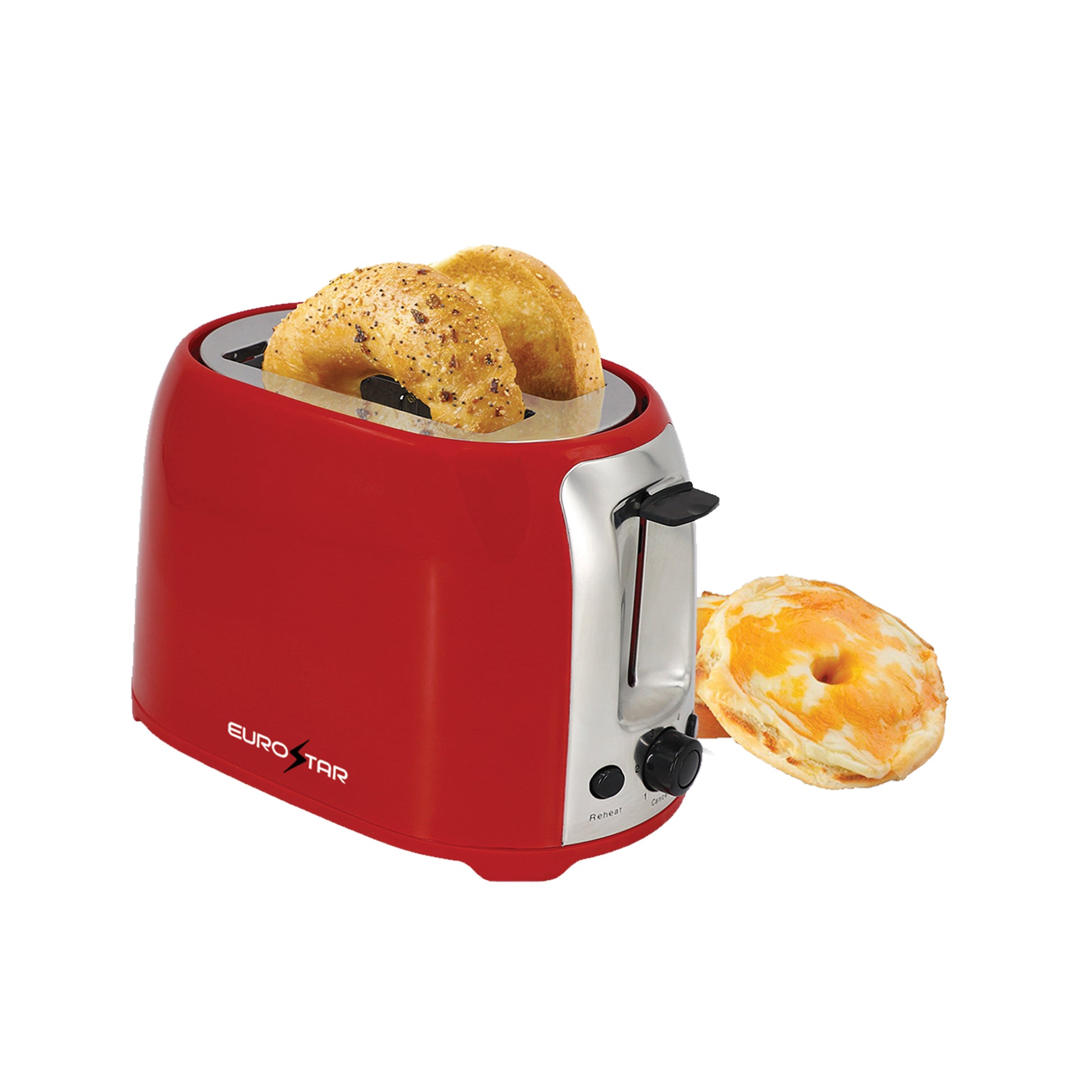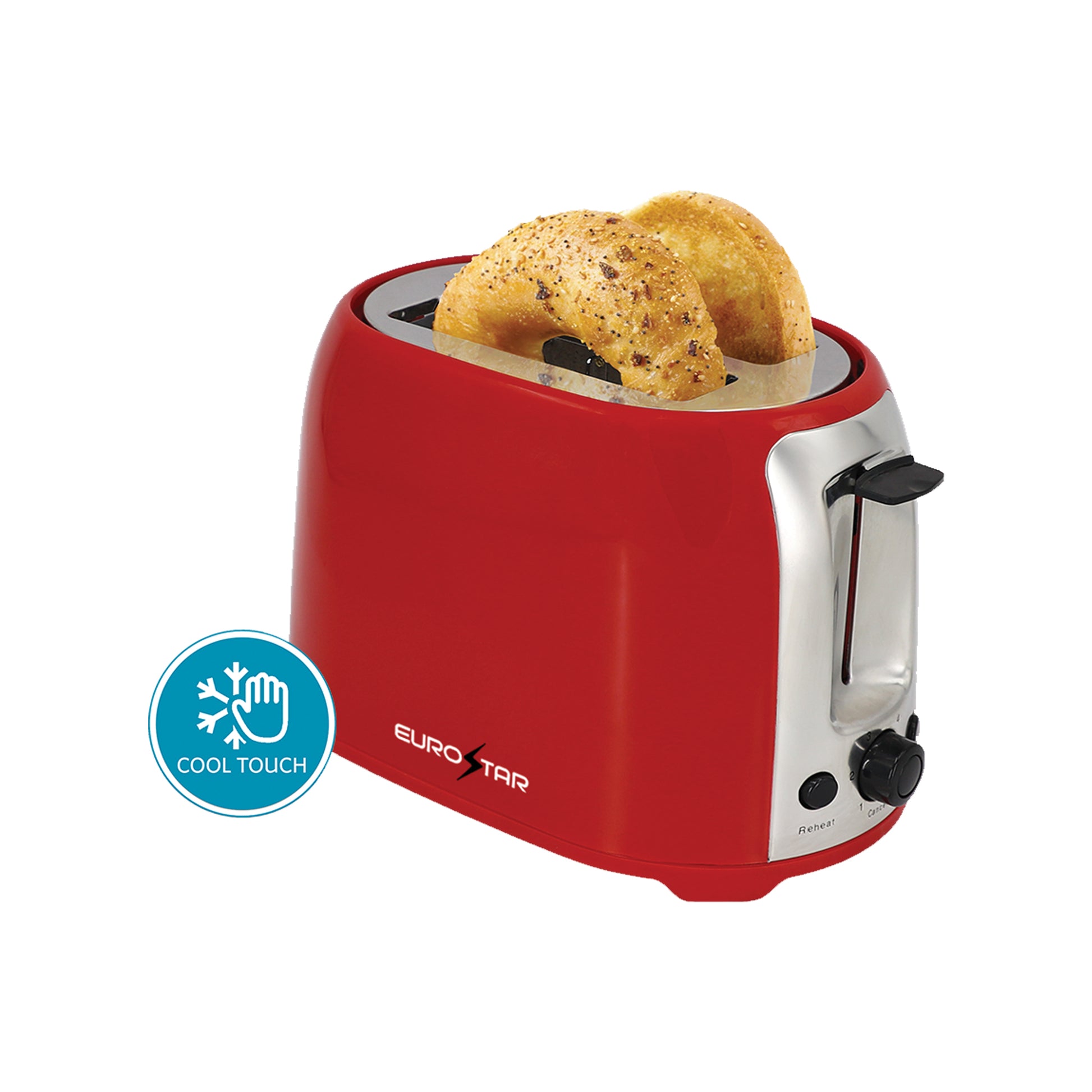 The EUROSTAR Cool Touch toaster is the perfect choice for any everyday busy body. Made with wide slots to fit more than just bread. Toss in bagels, waffles or Texas Toast for a special morning that demands for something better than basic toast. Reheat cold toast or defrost premade waffles with the reheat and defrost buttons. Make a quick snack just the way you want it with the simple adjustable browning control. The toaster includes a quick cancel button and an easy to clean crumb tray. Its built with a cool-touch exterior and you your safety and convenience in mind.
