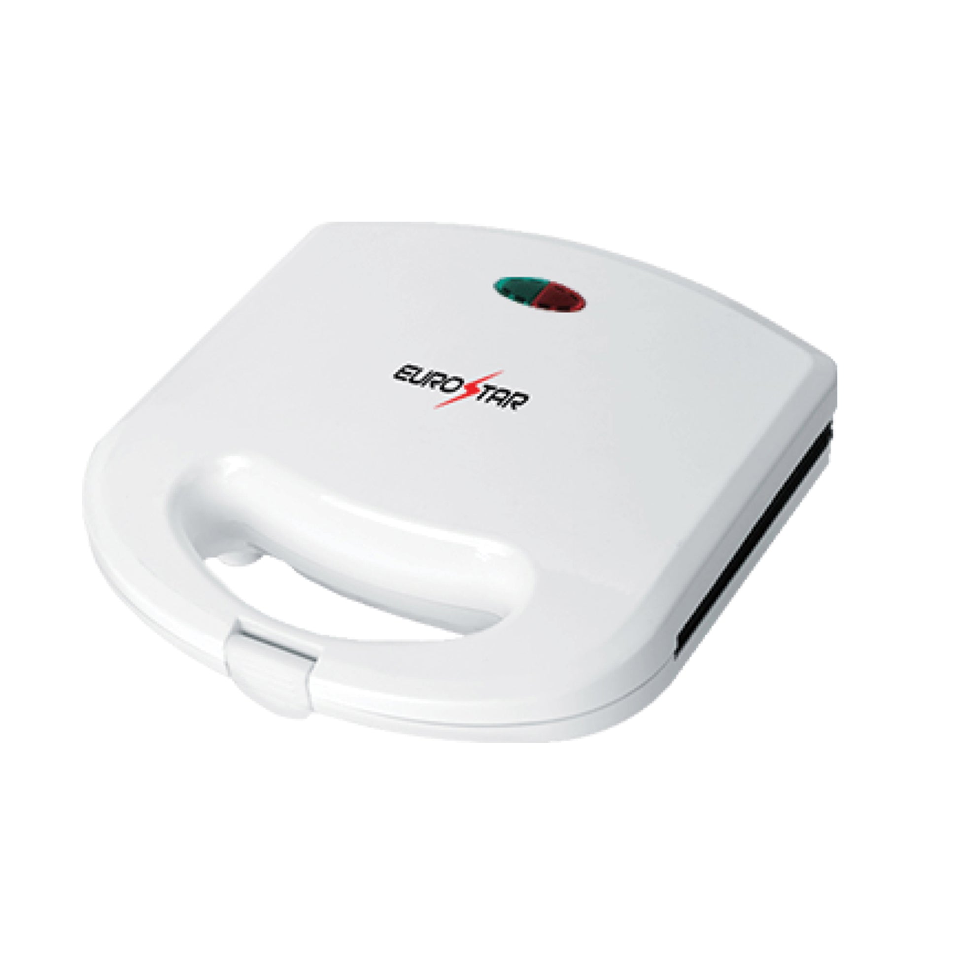 The EUROSTAR 760 Watts Waffle Maker perfectly prepares up to 2 waffles at a time with non-stick coated plates that are easy to clean. The power on and ready light lets you know when the waffle machine is on and has reached the ideal temperature to start cooking. Its compact design is built for small spaces and stands upright for minimal storage. The cool touch handle with locking latch allows safe operation while the anti-skid feet prevent the machine from slipping and sliding.
