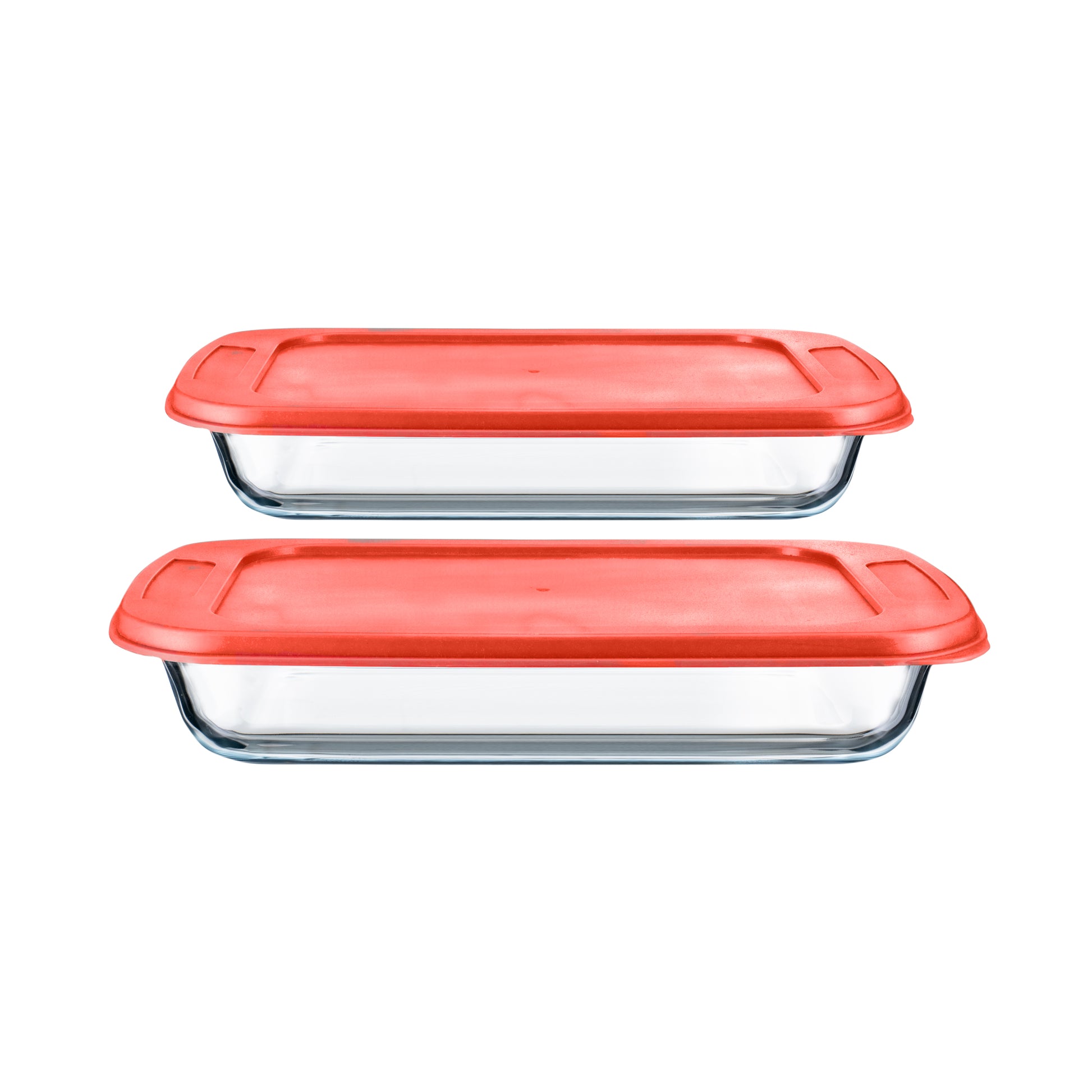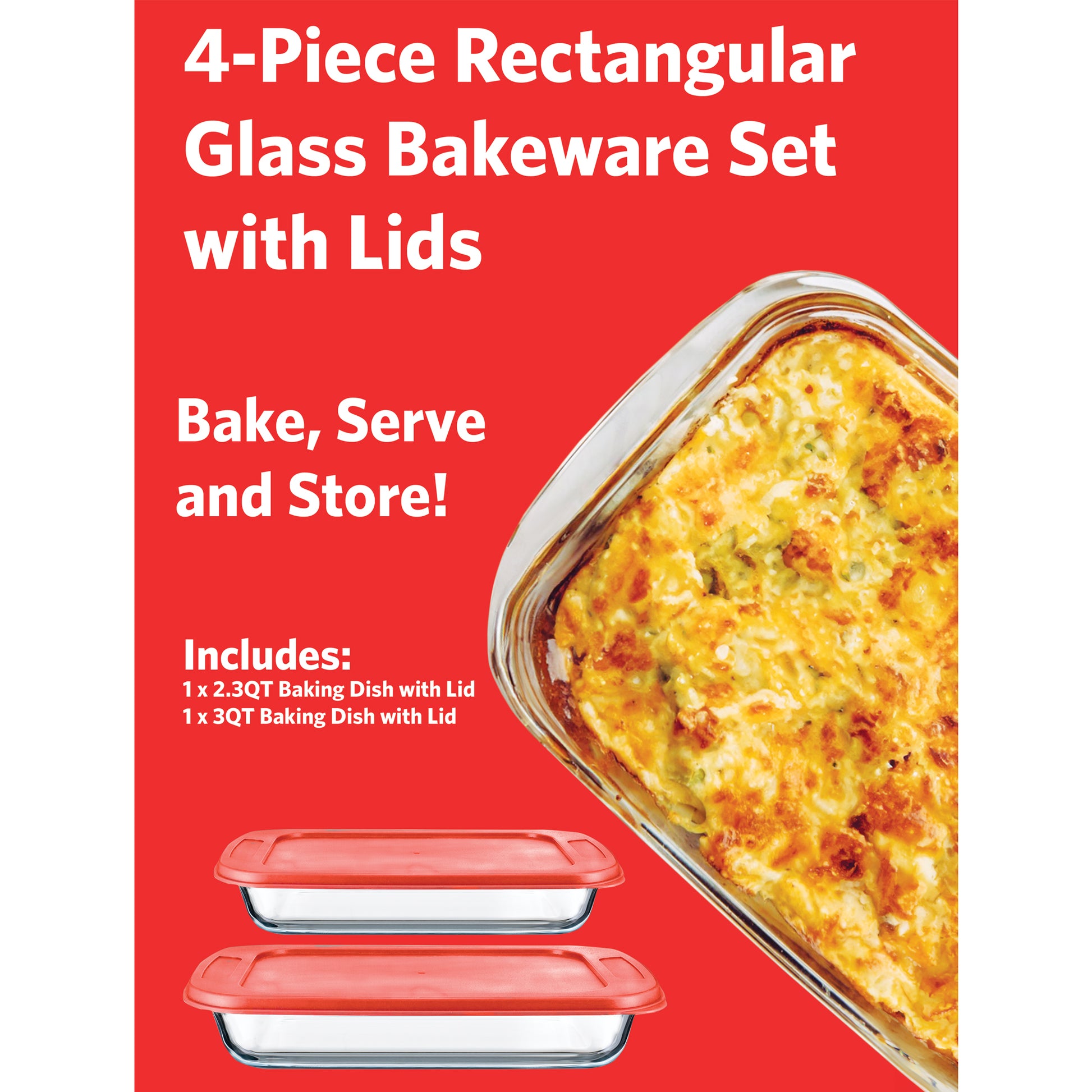 GB233RD 4 Piece Rectangular Glass Bakeware Set with Lids