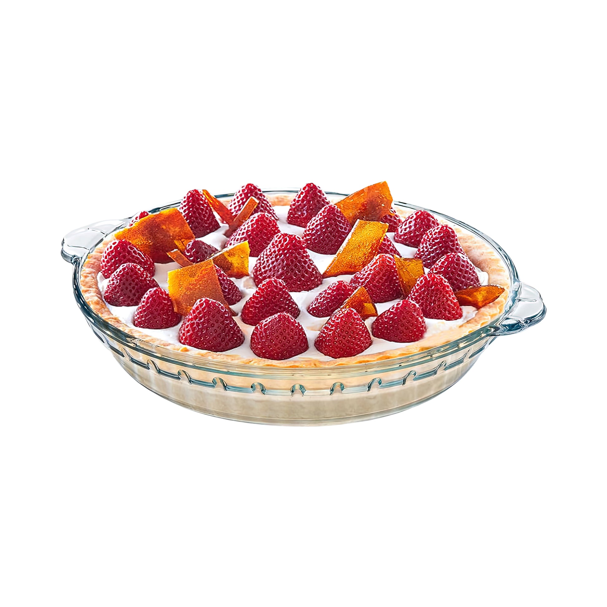9" round durable, high-quality tempered glass for even heating. A classic for sweet or savory pies, quiches and more. This is the perfect addition to any kitchen. Dishwasher, freezer, microwave and oven safe. Easy to clean.