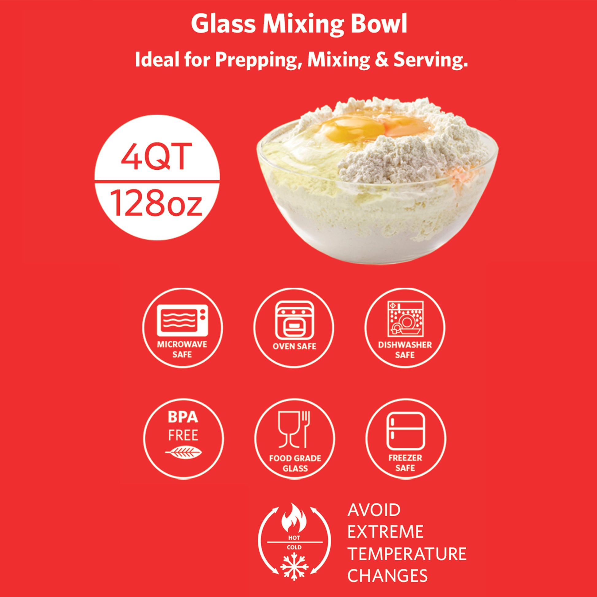 Upgrade your kitchen with the EUROSTAR 4 Quart Glass Mixing Bowl - your go-to for prepping, mixing and serving. Crafted from BPA-free, food-grade glass, this durable bowl is microwave, oven, freezer and dishwasher safe, making meal prep effortless. Whether you're whisking batter, tossing salads, or serving side dishes, this versatile bowl combines functionality with a sleek, transparent design.
