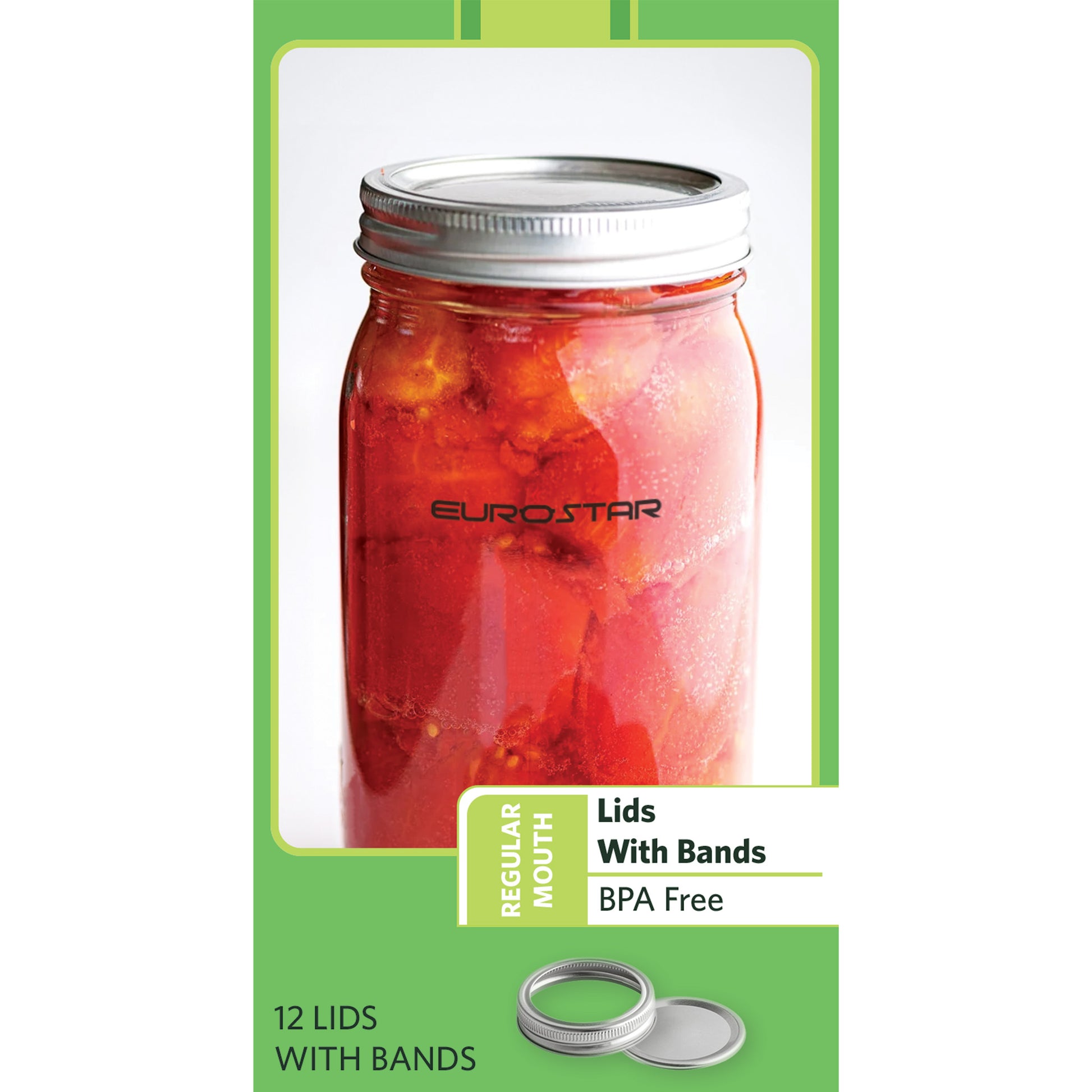 Upgrade your kitchen with the EUROSTAR Universal Mason Jar Lids with Bands! Designed for a secure, airtight seal, these durable BPA-free lids keep your food fresh and your drinks spill-free. Made with rust-resistant materials, they're perfect for canning, fermenting, meal prepping, and pantry storage. Perfect for homemade jams, pickles, sauces, and dry goods. These lids and bands are universal and are interchangeable with other major brands of regular mouth sized jars.