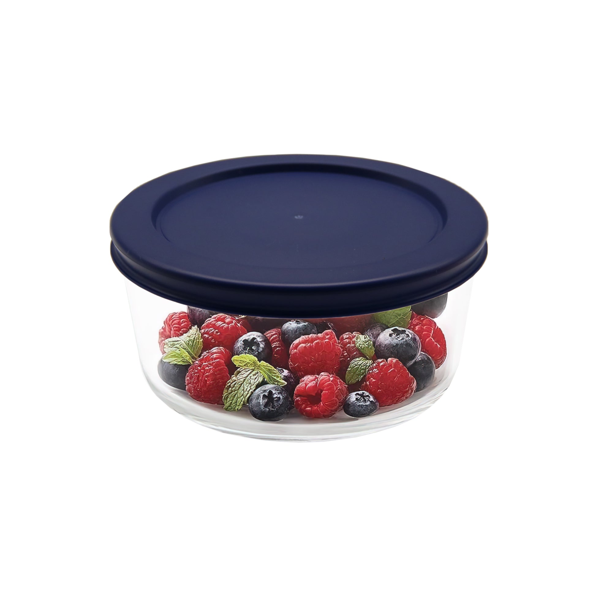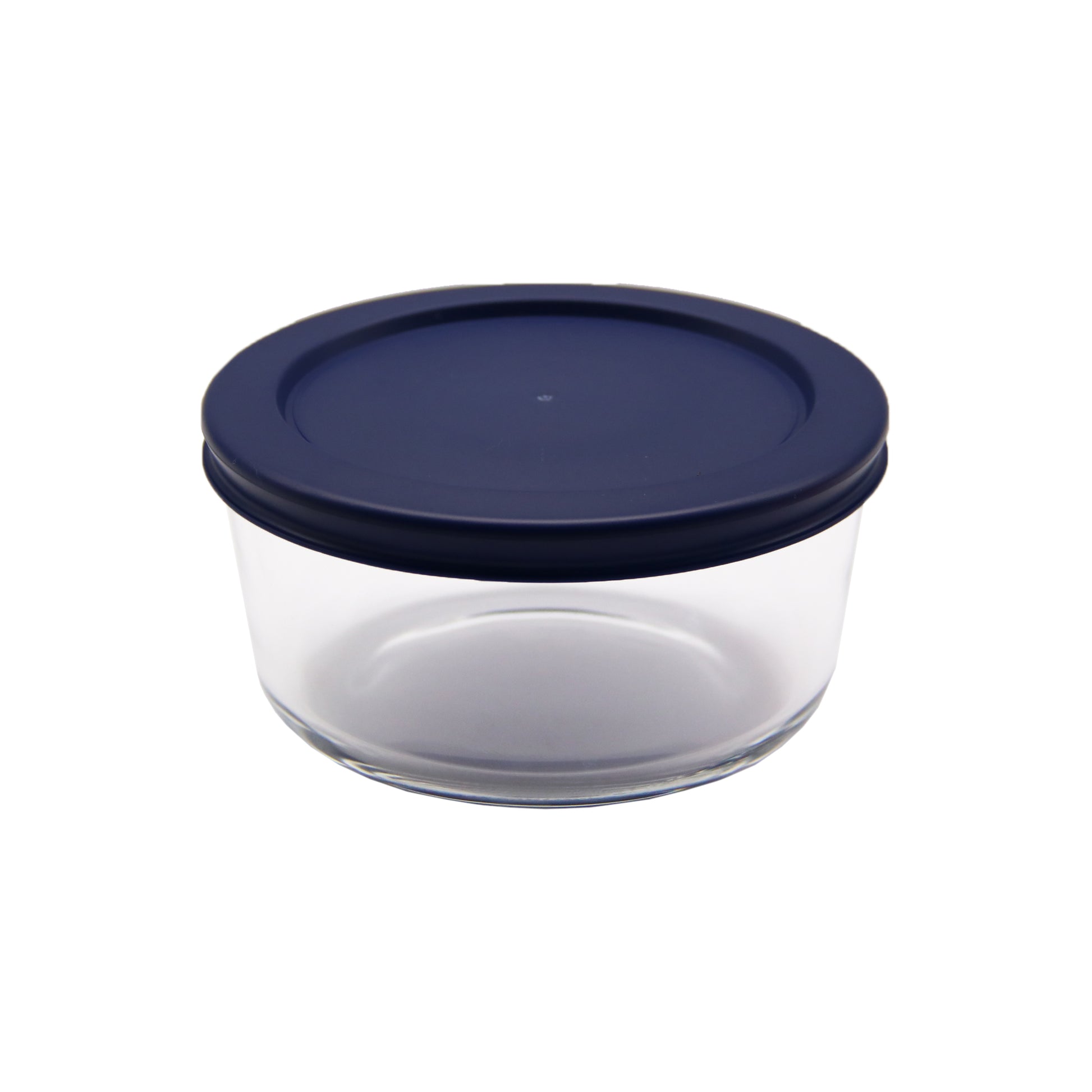 GS2CA 2-Cup Round Glass Food Storage Container with Blue Lids