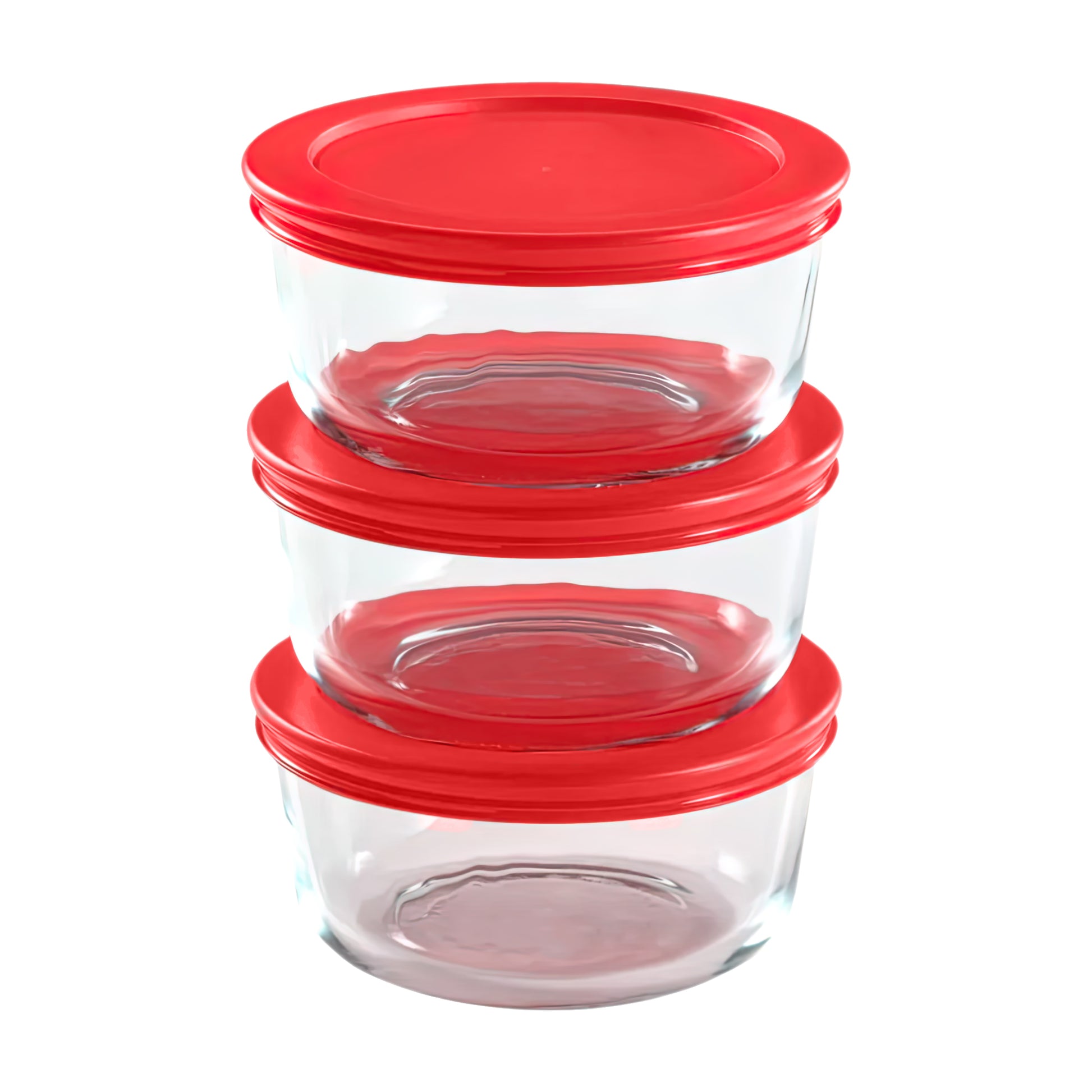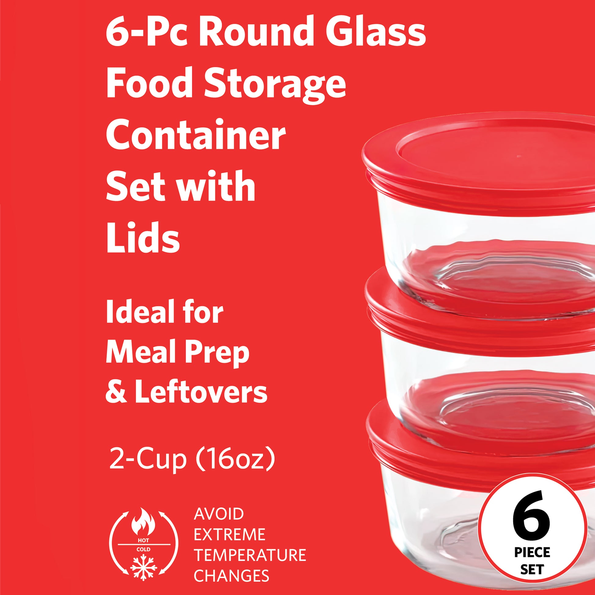 GS2CX3RD 6 Piece 2-Cup Round Storage Set with Red Lids