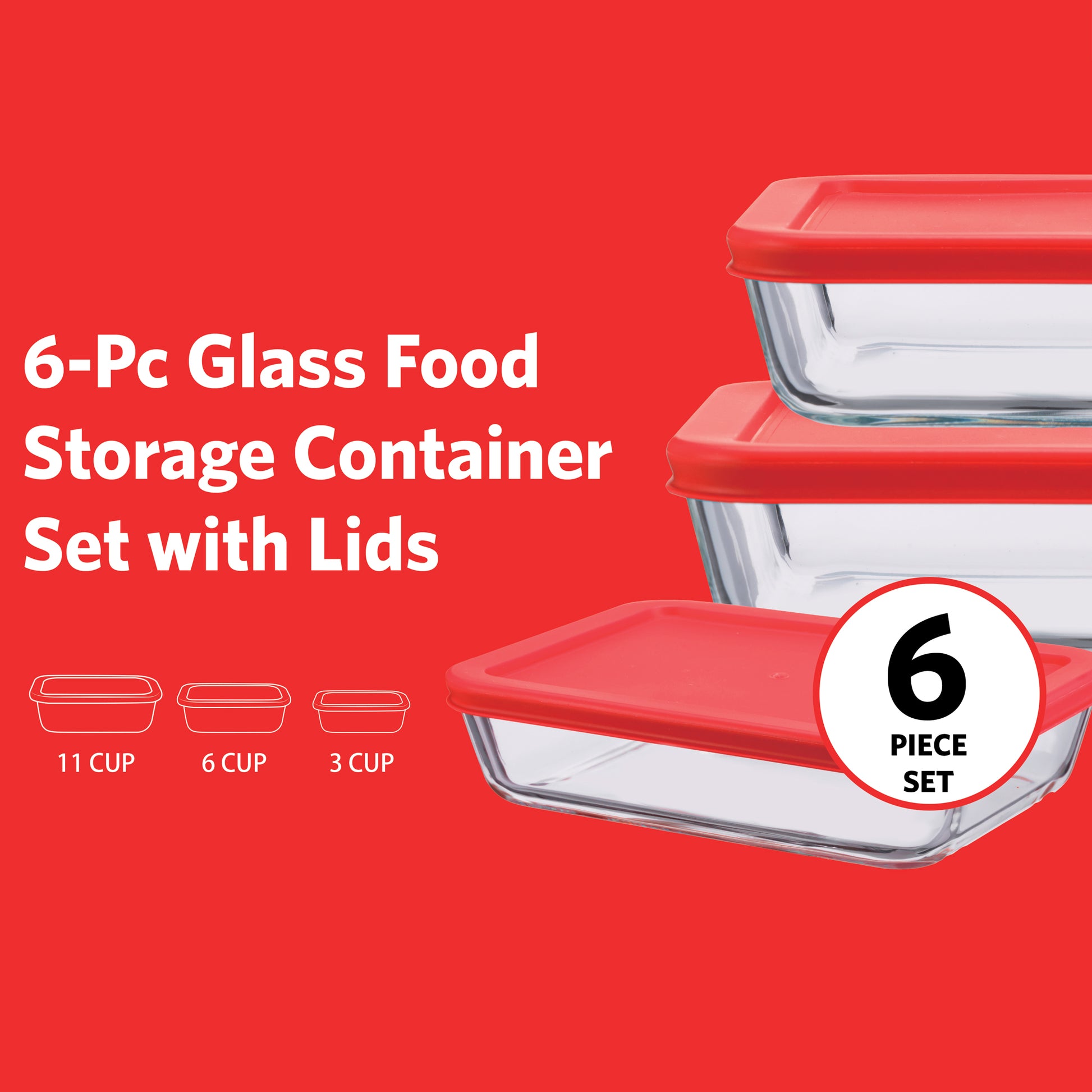 GS3611RCTR 6 Piece Glass Food Storage Container Set with Lids