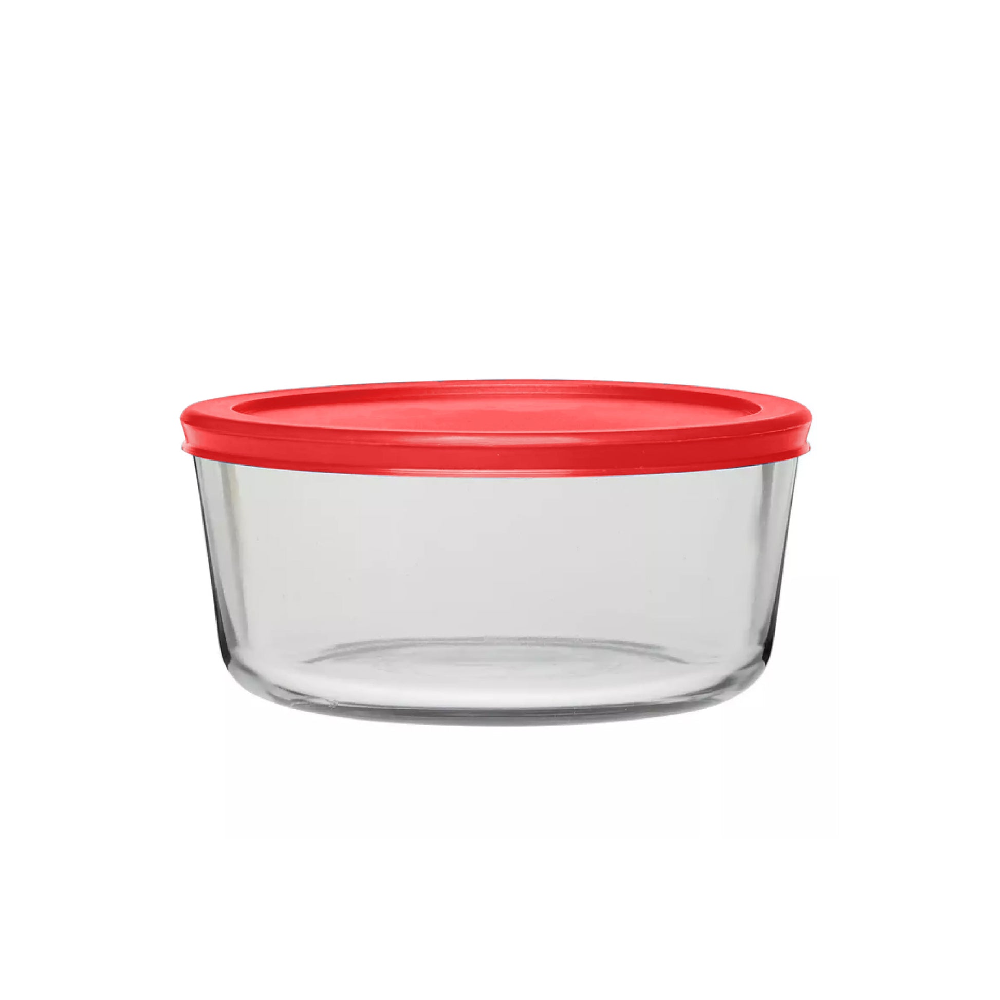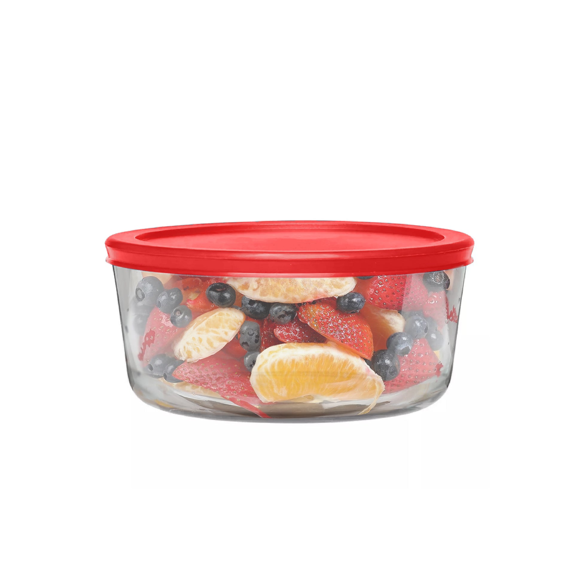 GS7CRD 7-Cup Round Glass Food Storage Container with Red Lids