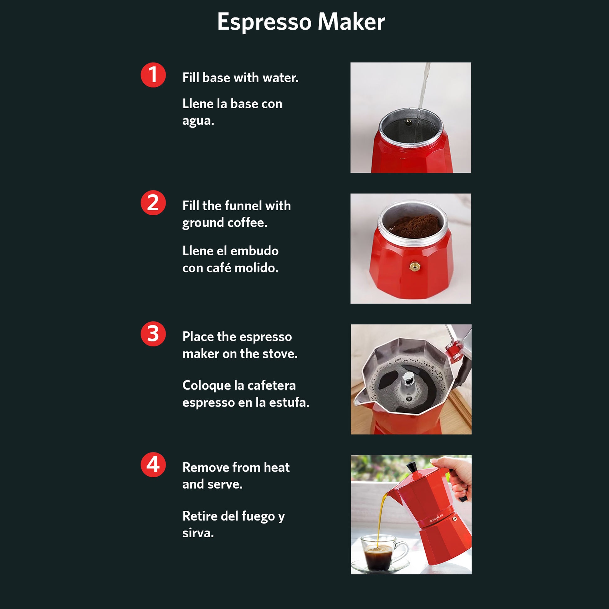 SEM303R 3-Cup Stovetop Espresso Maker, Red
