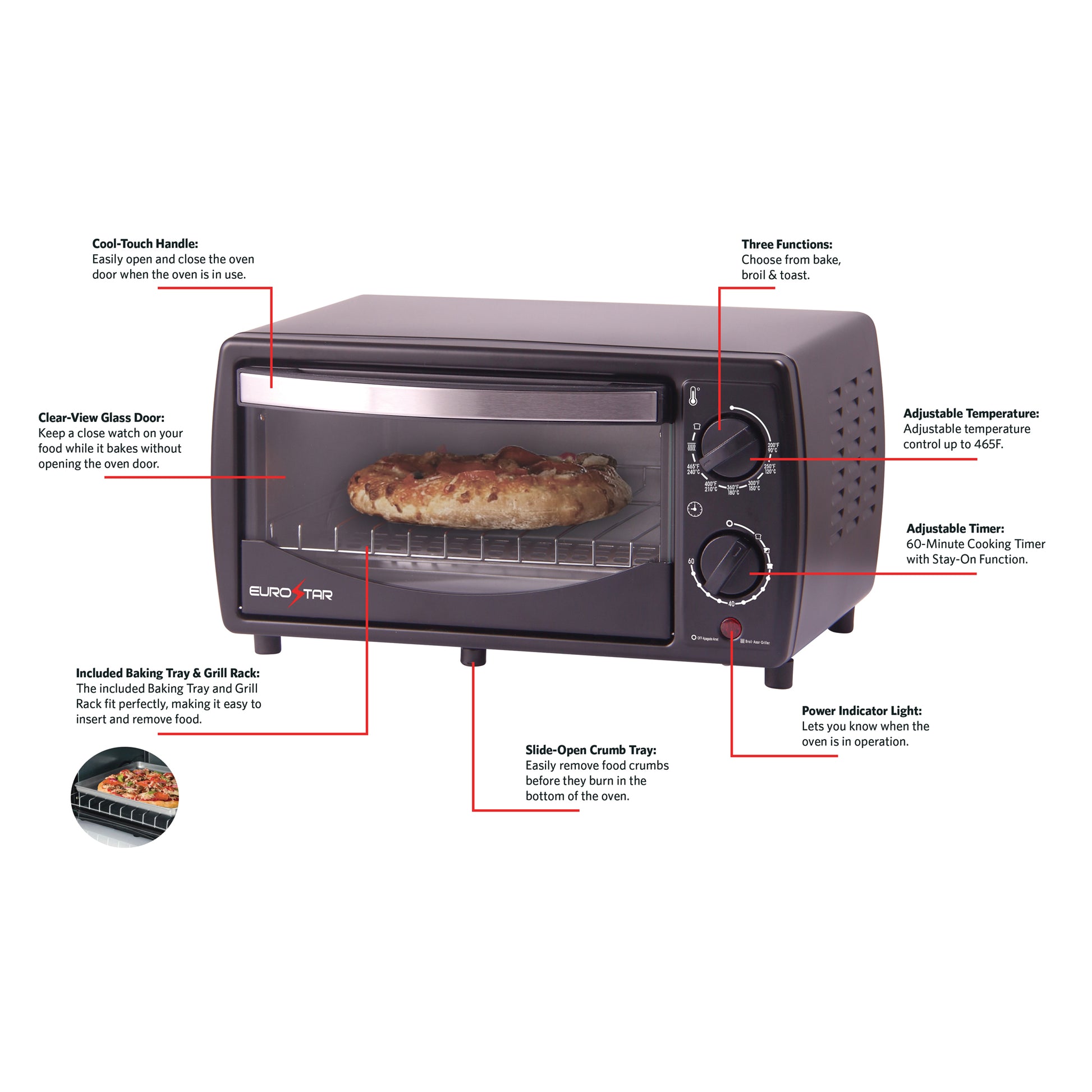 Slide-Open Crumb Tray: Easily remove crumbs before they burn in the bottom of the oven.